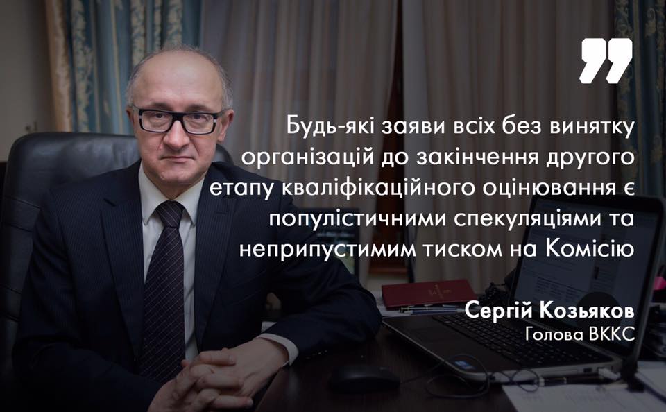 "Ми на них не підемо, як би це комусь не бажалось під начебто гучними гаслами та заявами. ВККС буде жорстко дотримуватися законодавства, чітко слідкувати за регламентом і всіх процедур – адже від цього залежать результати роботи великої кількості людей протягом семи місяців", - заявив Сергій Козьяков."