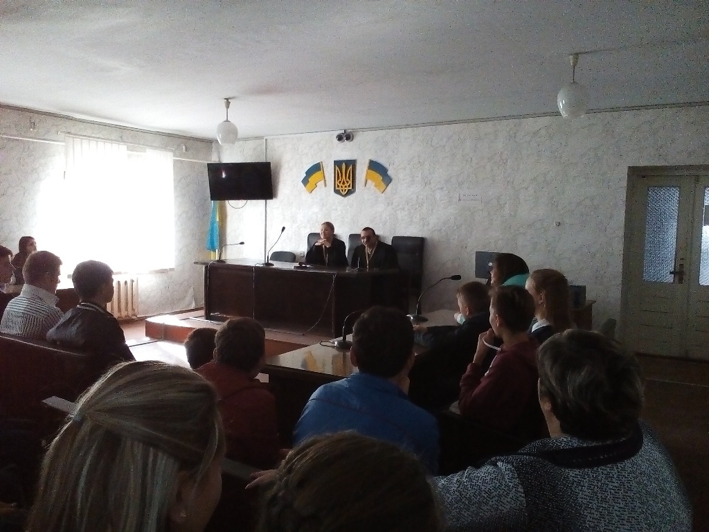 Судді Варгаракі Сергій Михайлович та Крутова Ольга Миколаївна ознайомили школярів зі складовими судової системи України, змінами в законодавстві з питань судоустрою, про засади здійснення правосуддя, застосування нормативно - правових актів, про правову поведінку та необхідність її дотримання, кримінальну та адміністративну відповідальність неповнолітніх.